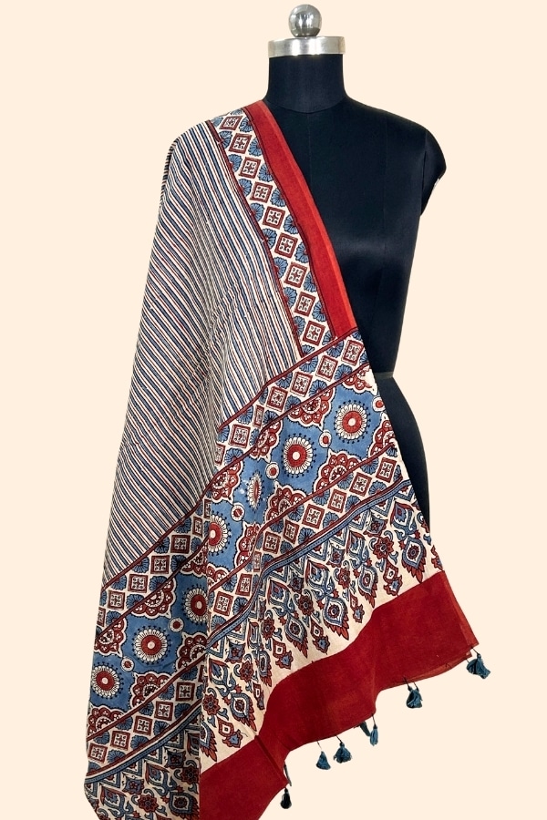 Ajrakh HandCrafted Natural Dye Pure Cotton Dupatta