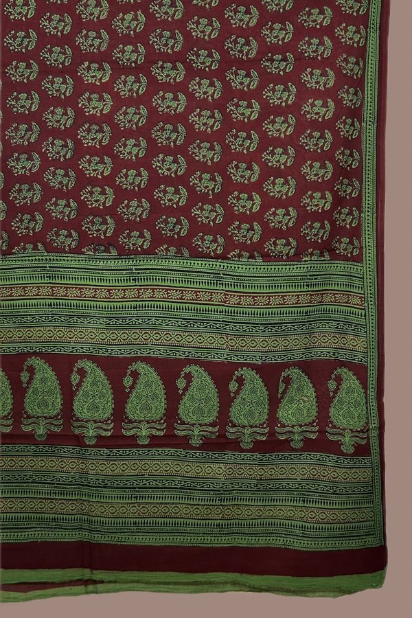 This Fabric is handloom woven and / or hand printed using vegetable dyes. There might be slight irregularities in the motif & colour shade which is a result of human involvement & is a hallmark of fabrics made by hand. Since the fabric is dyed using natural, vegetable dyes, it may rub dry or bleed colour on coming in contact with water for the first time.