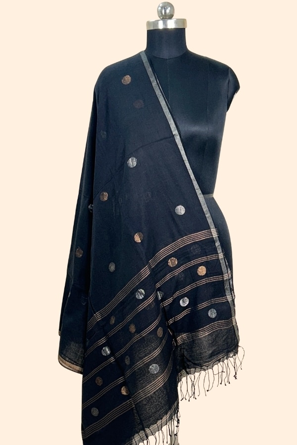 Black – Authentic Handloom Woven Pure Soft Cotton Dupatta