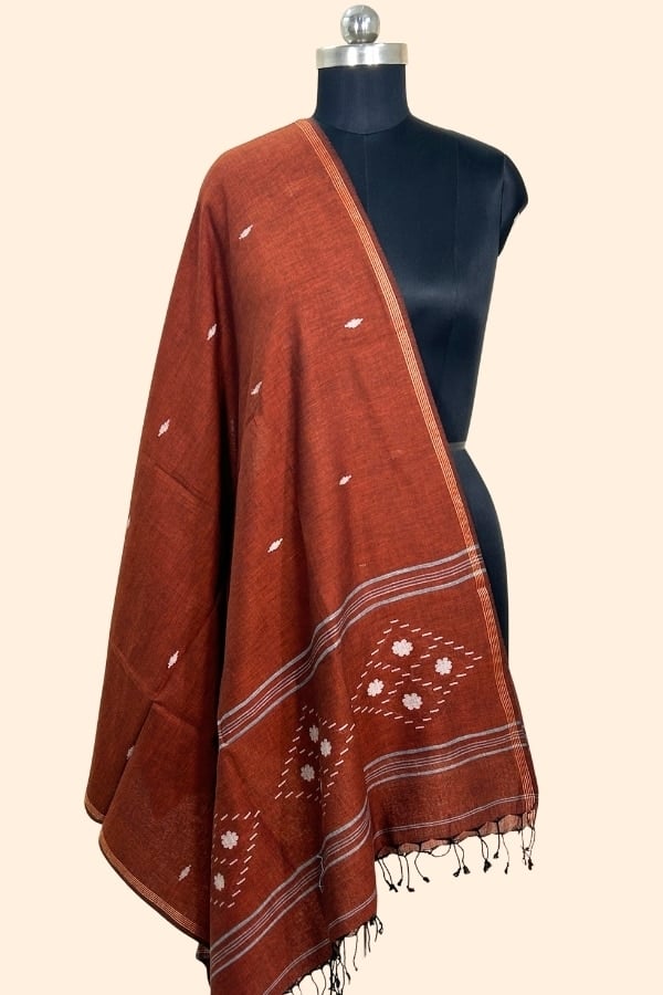 Brown – Authentic Handloom Woven Pure Soft Cotton Dupatta