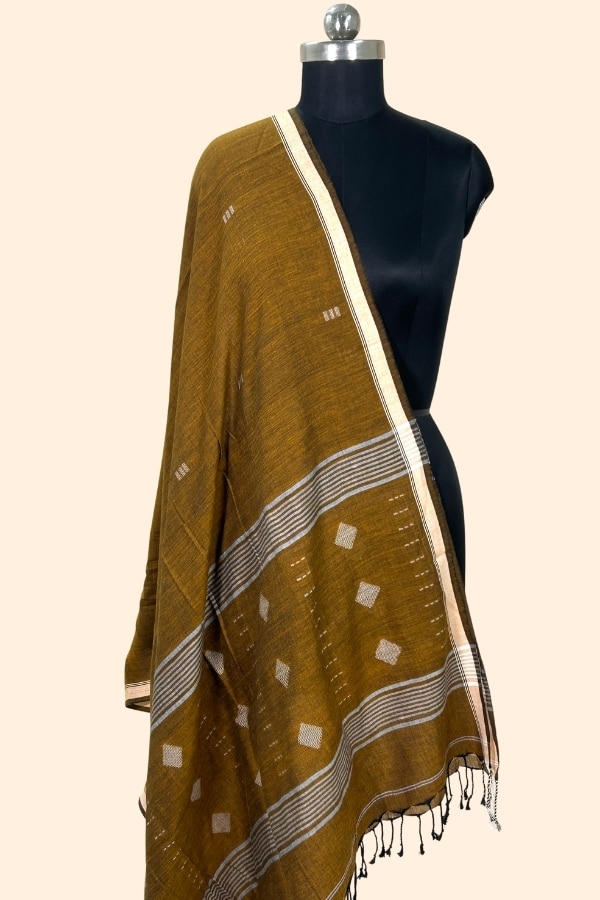 Brown – Authentic Handloom Woven Pure Soft Cotton Dupatta