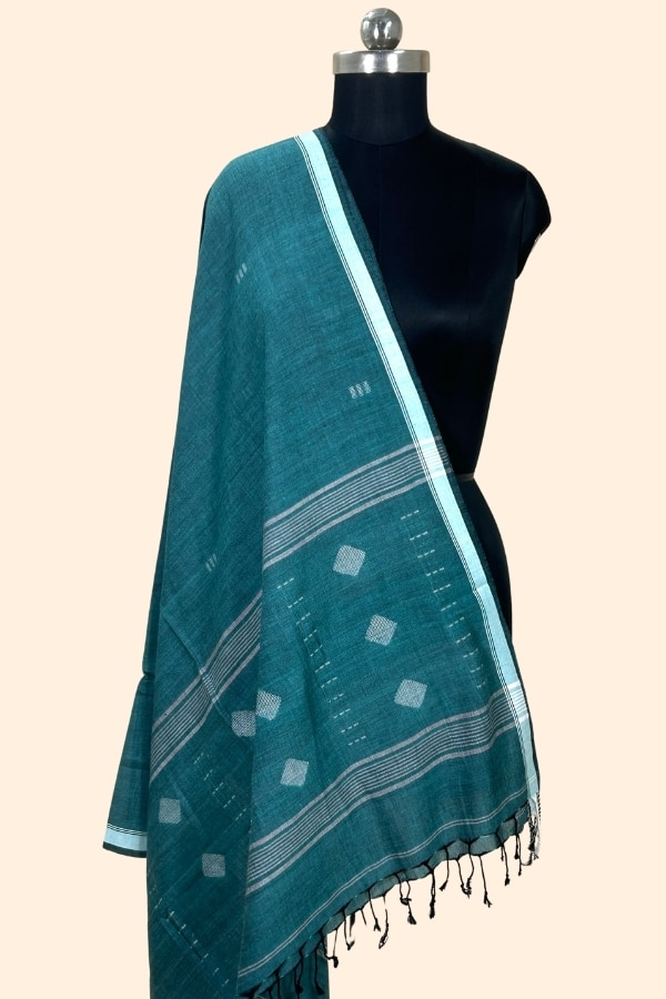 Green – Authentic Handloom Woven Pure Soft Cotton Dupatta