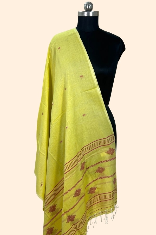 Yellow – Authentic Handloom Woven Pure Soft Cotton Dupatta