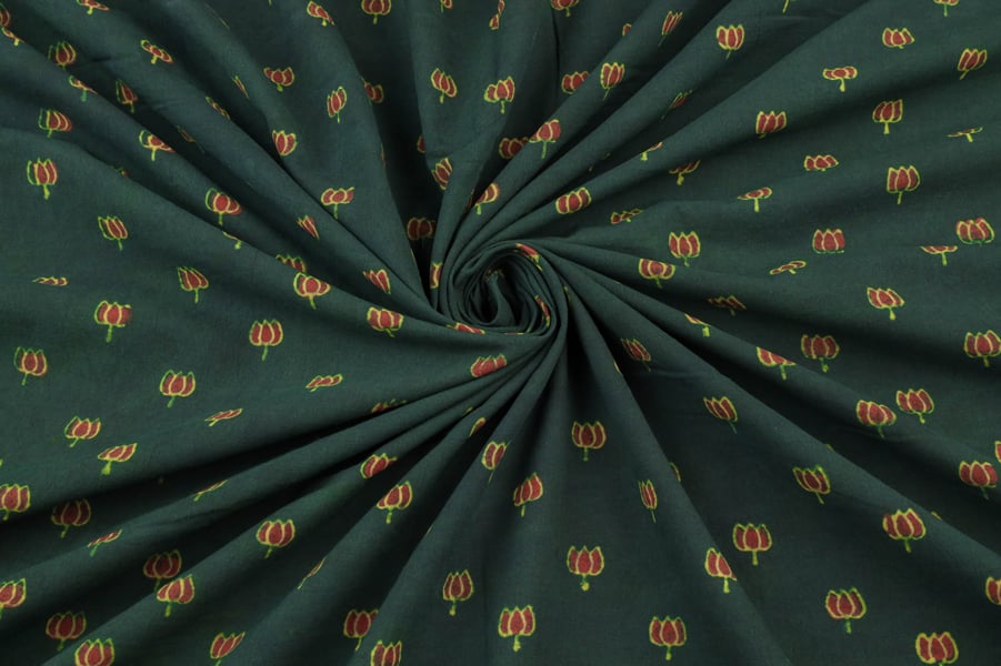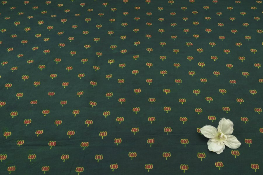 Green – Hari Gulnaar Buti Ajrakh Cotton Blockprint Fabric