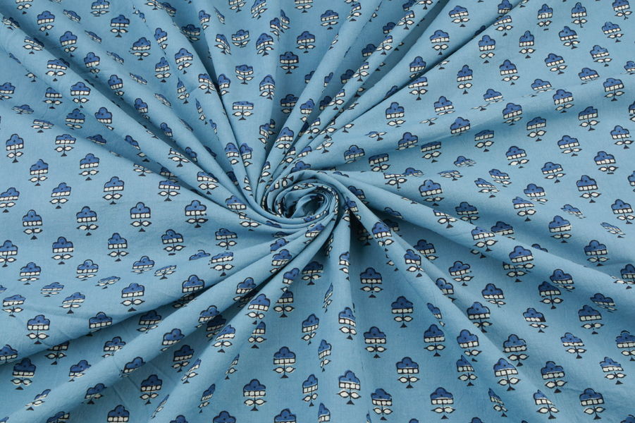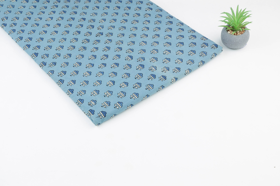 Blue – Neel Angan Buti Ajrakh Cotton Blockprint Fabric