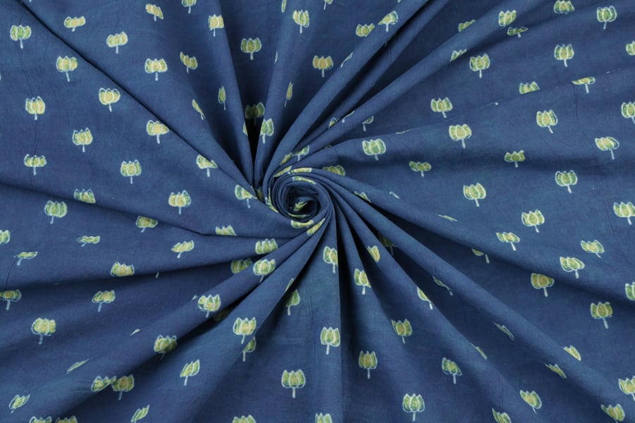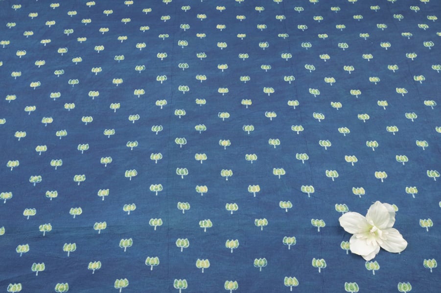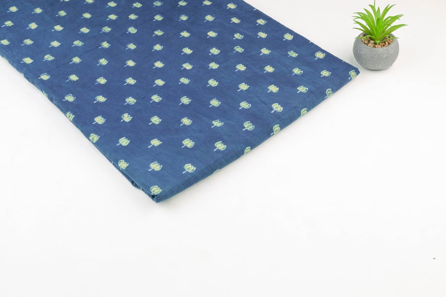 Blue – Neel Anguri Buti Ajrakh Cotton Blockprint Fabric