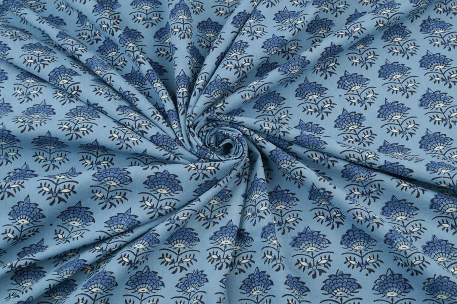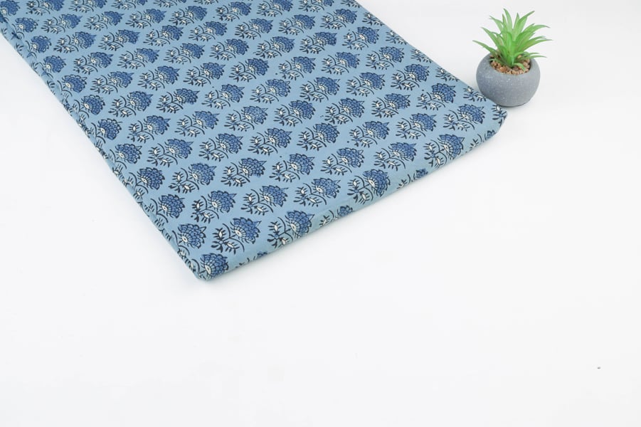 Blue – Neel Anguri Buti Ajrakh Cotton Blockprint Fabric