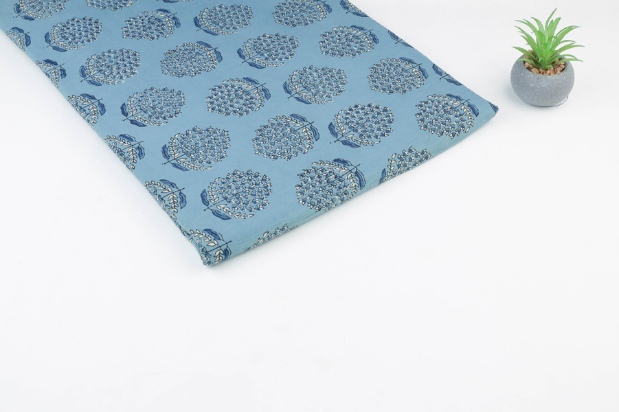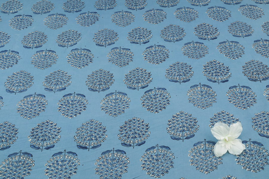 Blue – Neel Phool Bageecha Ajrakh Cotton Blockprint Fabric