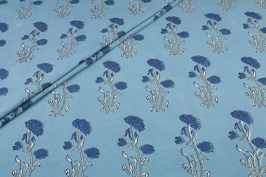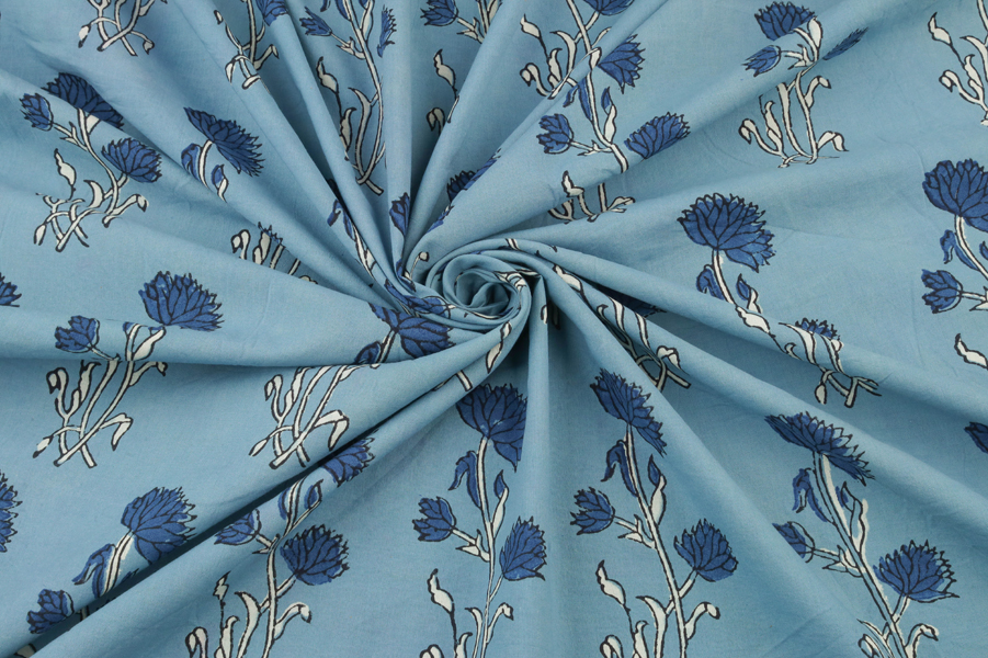Blue – Neel Pushp Vriksha Ajrakh Cotton Blockprint Fabric