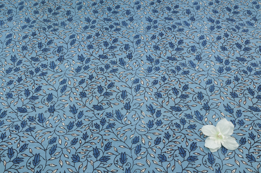 Blue – Neel Rekha Angan Ajrakh Cotton Blockprint Fabric