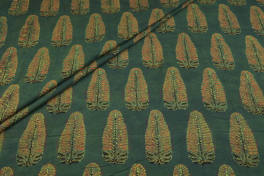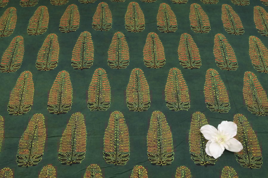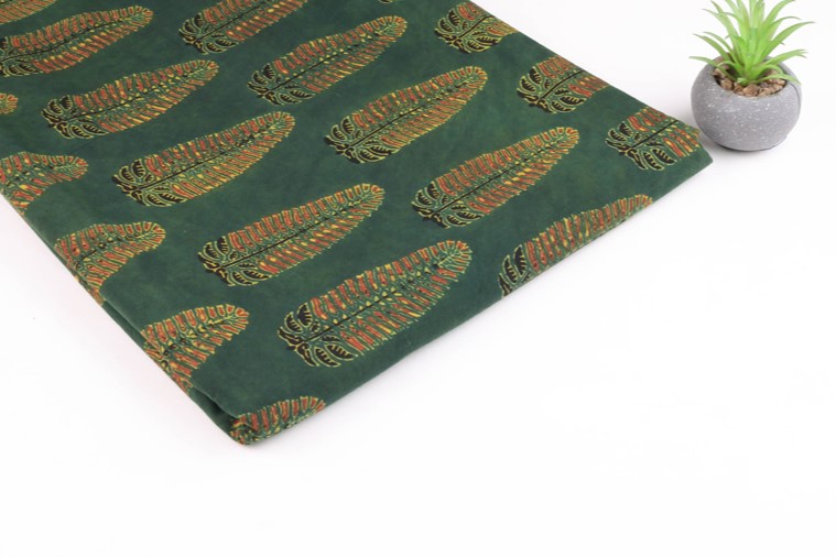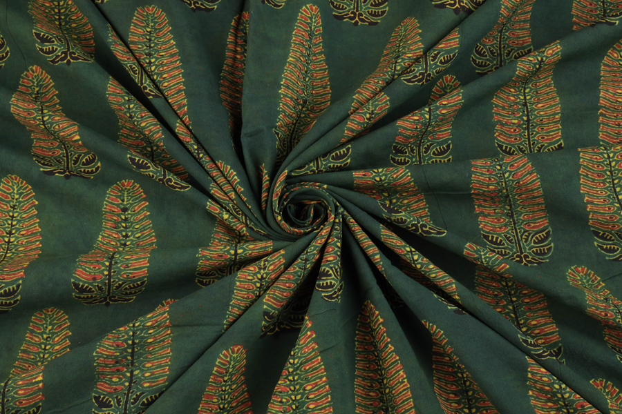 Hunter Green Pankh Buta Ajrakh Cotton Fabric