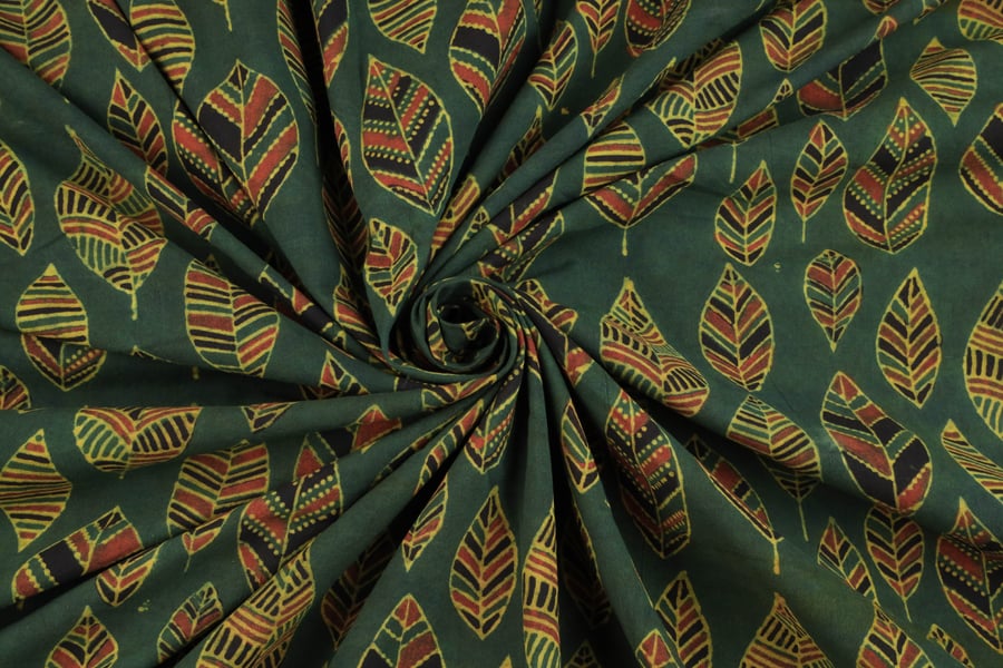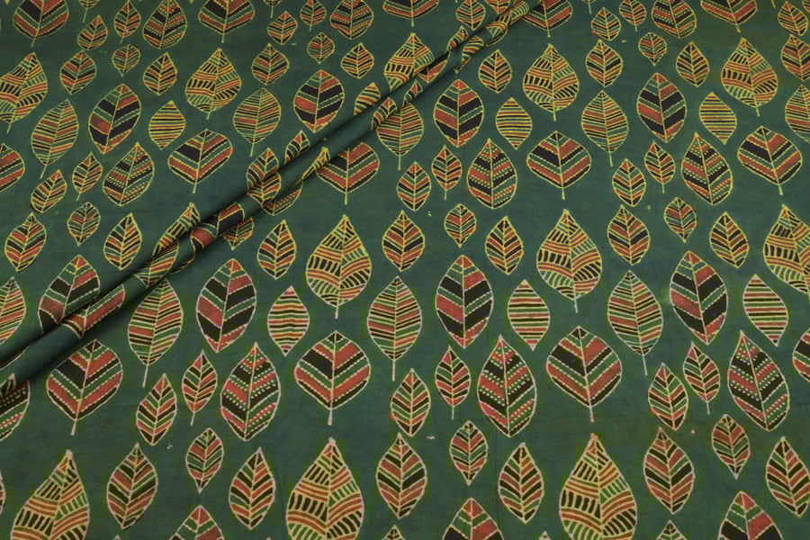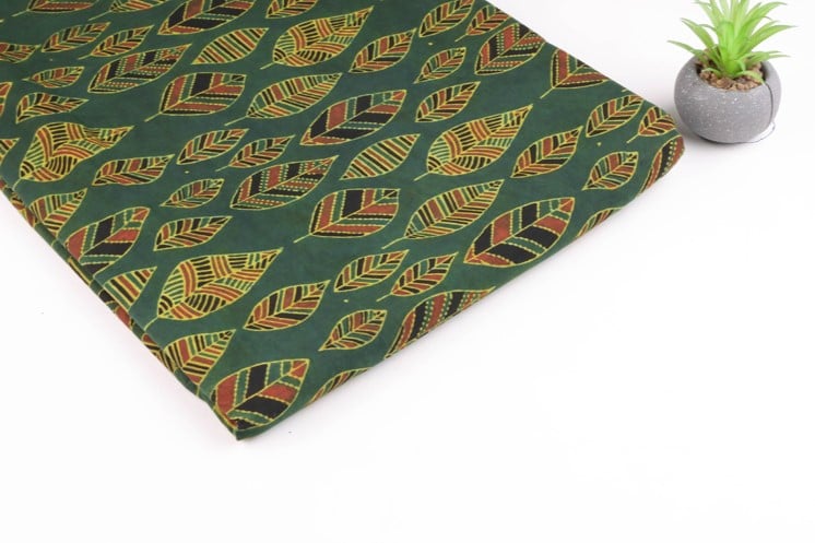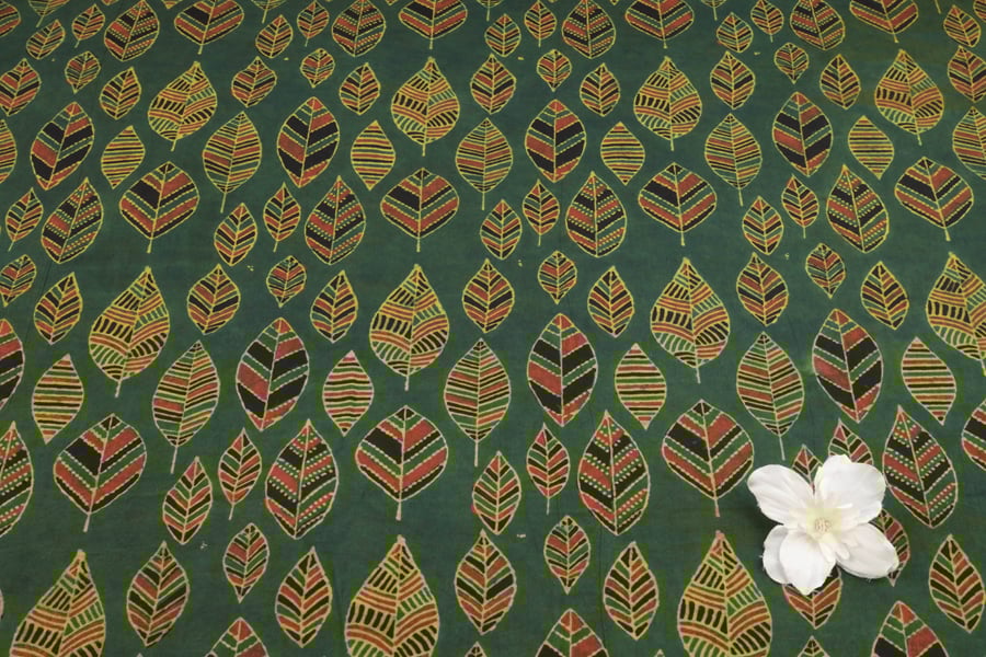 Hunter Green Patta Buti Ajrakh Cotton Fabric