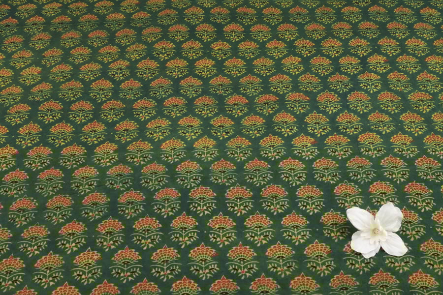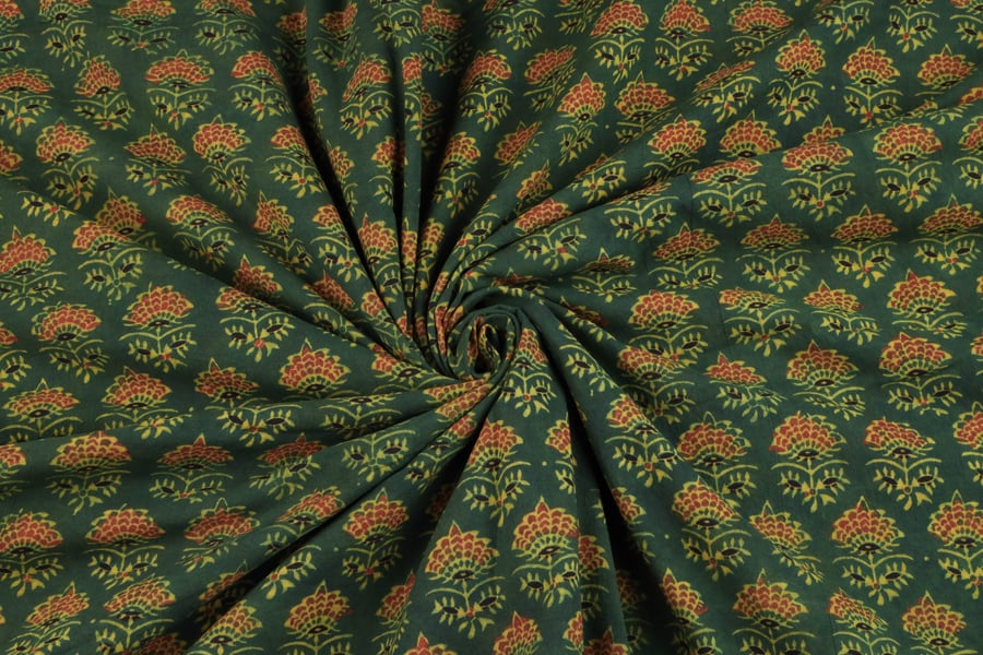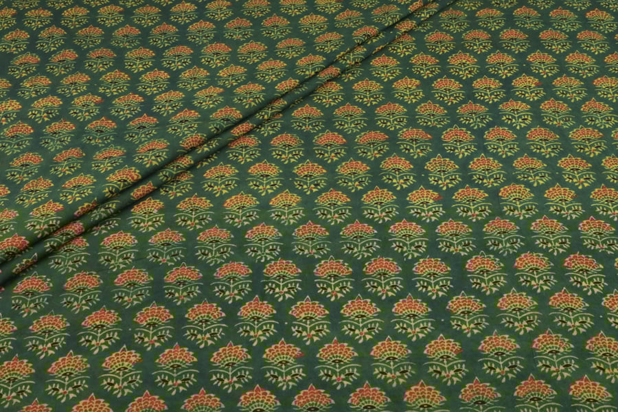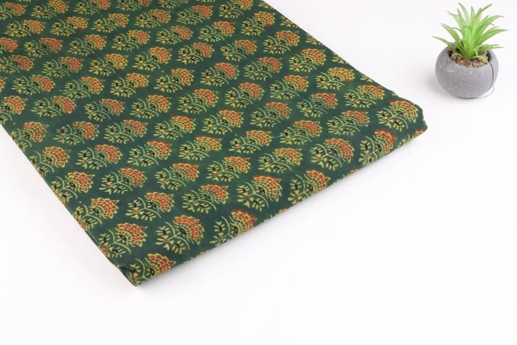 Hunter Green Phool Buti Ajrakh Cotton Fabric