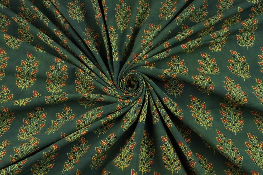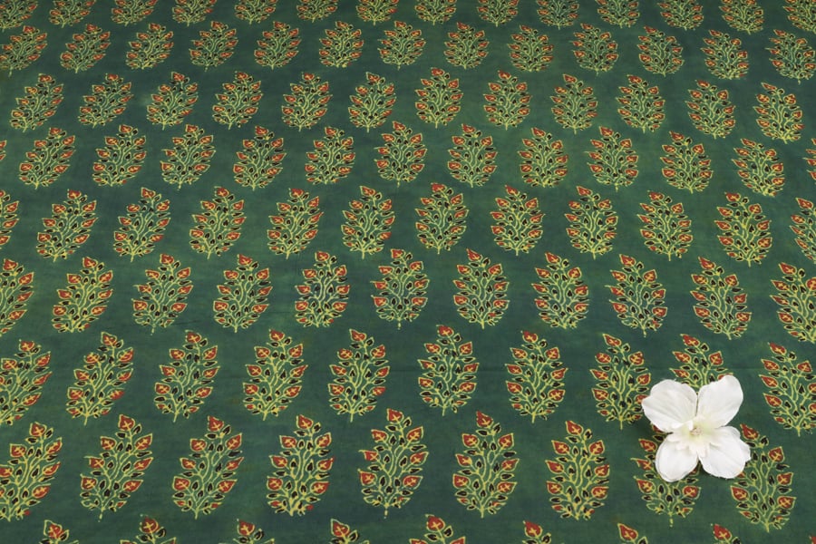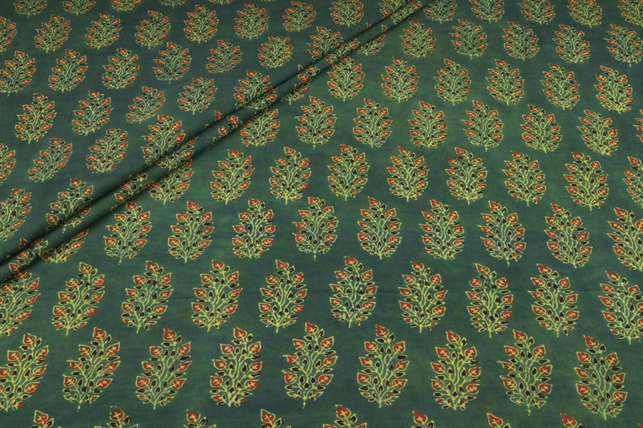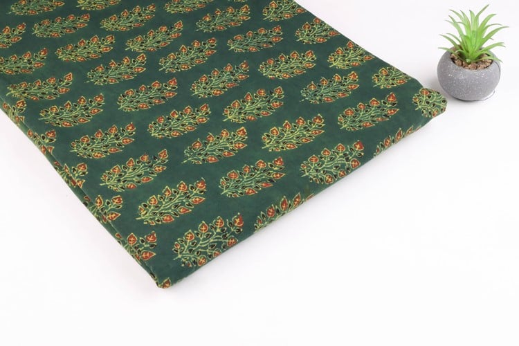 Hunter Green Shakh Buta Ajrakh Cotton Fabric
