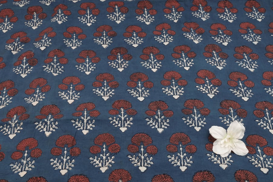 Natural Blue Dye Handblock Ajrakh Printed Cotton Fabric