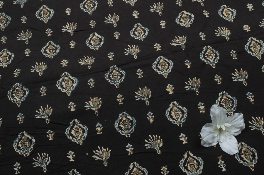 Natural Black Dye Intricate Handblock Ajrakh Printed Cotton Fabric