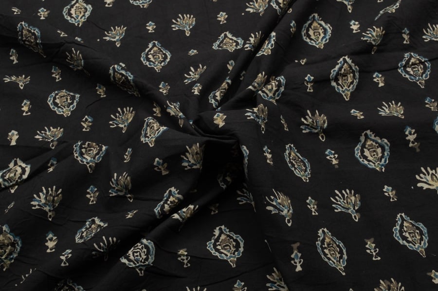 Natural Black Dye Handblock Ajrakh Printed Cotton Fabric