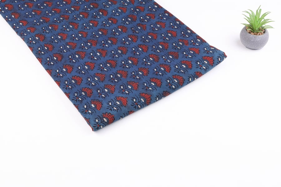 Natural Red Dye Handblock Ajrakh Printed Cotton Fabric