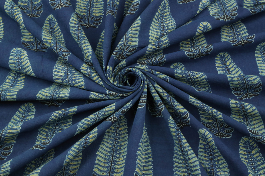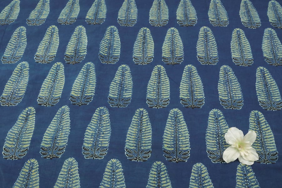 Natural Indigo Blue Handblock Ajrakh Printed Cotton Fabric