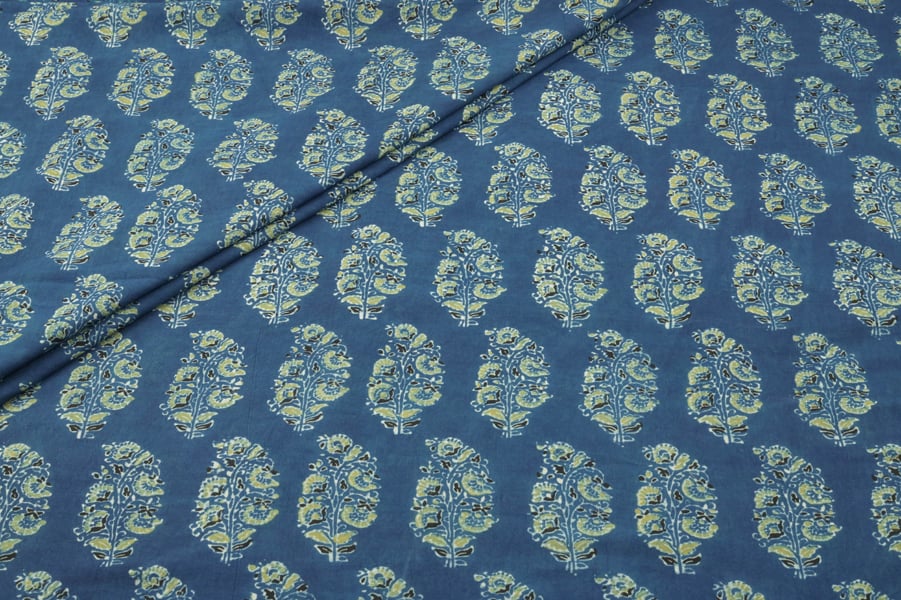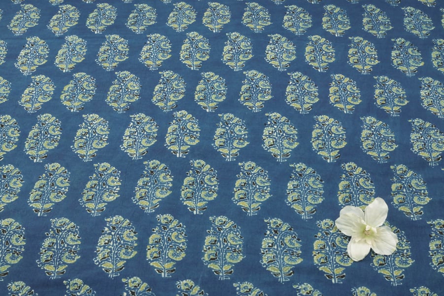 Natural Indigo Blue Handblock Ajrakh Printed Cotton Fabric