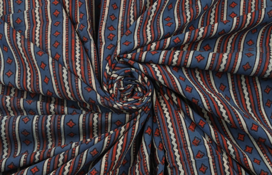 Natural Indigo Blue Dye Handblock Ajrakh Printed Cotton Fabric