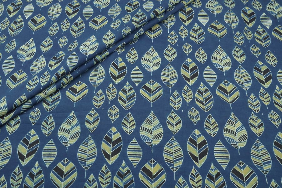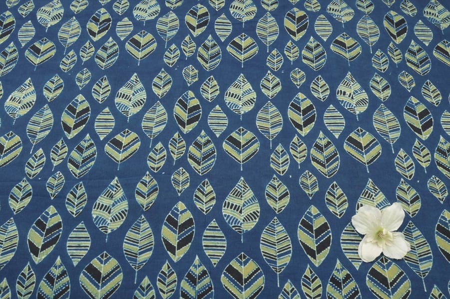 Natural Indigo Blue Dye Handblock Ajrakh Printed Cotton Fabric