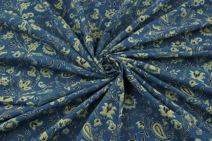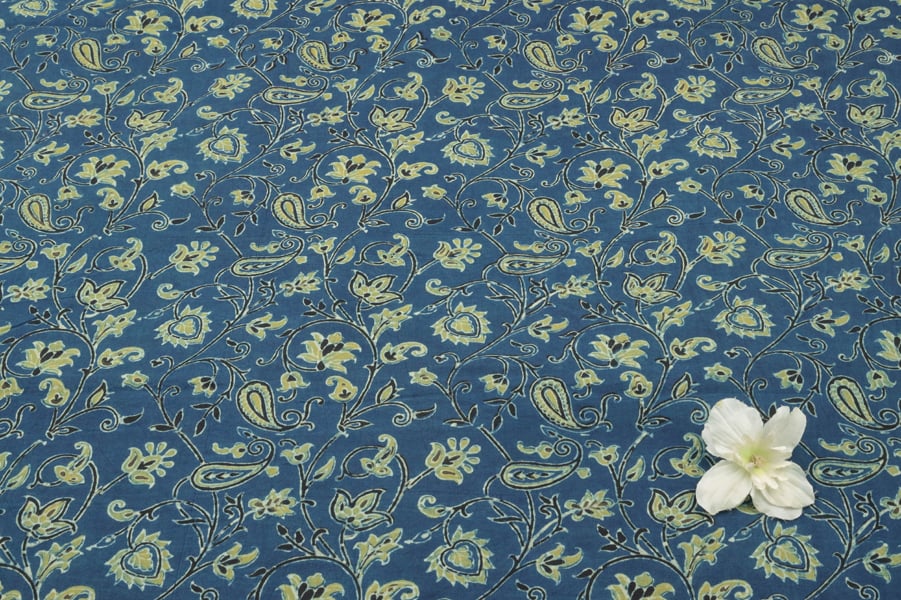 Natural Indigo Blue Dye Handblock Ajrakh Printed Cotton Fabric