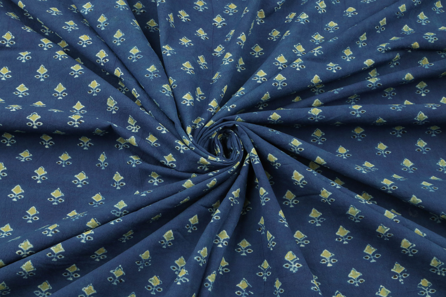 Natural Indigo Blue Dye Handblock Ajrakh Printed Cotton Fabric