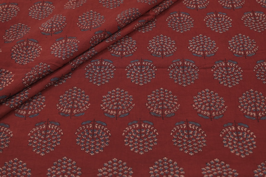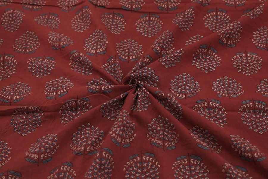 Natural Red Dye Handblock Ajrakh Printed Cotton Fabric