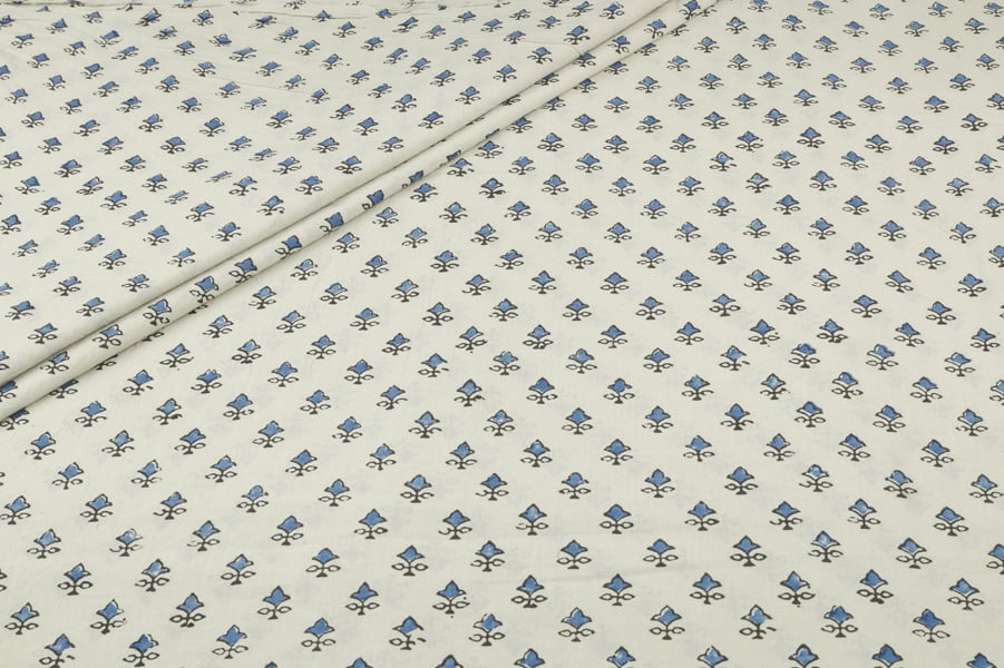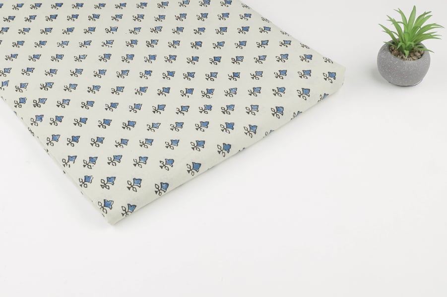 Natural White Handblock Ajrakh Printed Cotton Fabric