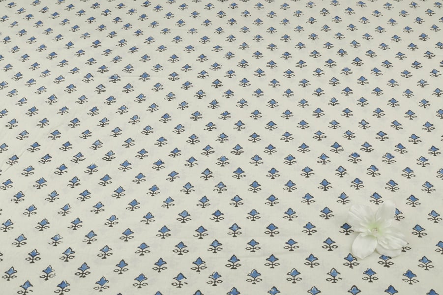 Natural White Dye Handblock Ajrakh Printed Cotton Fabric