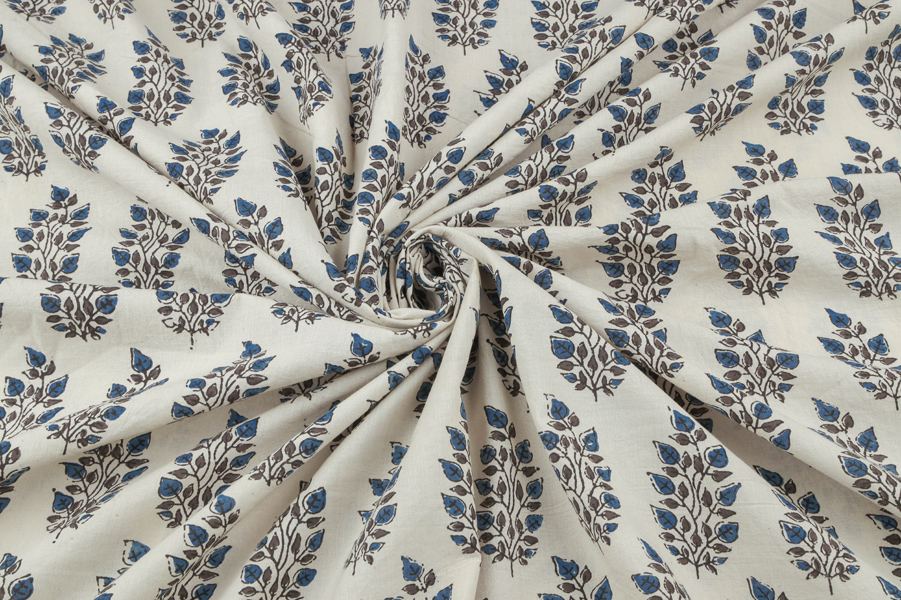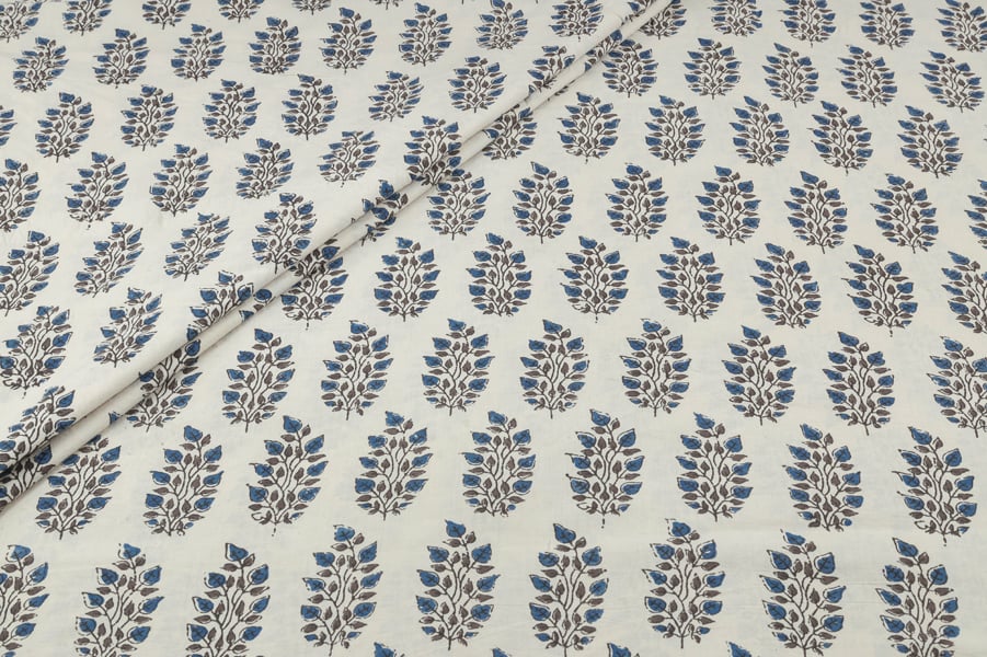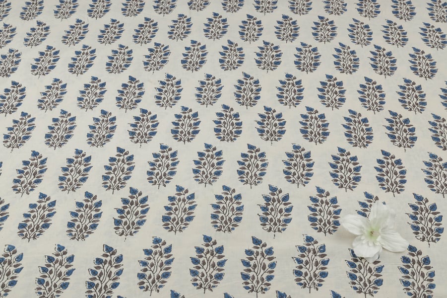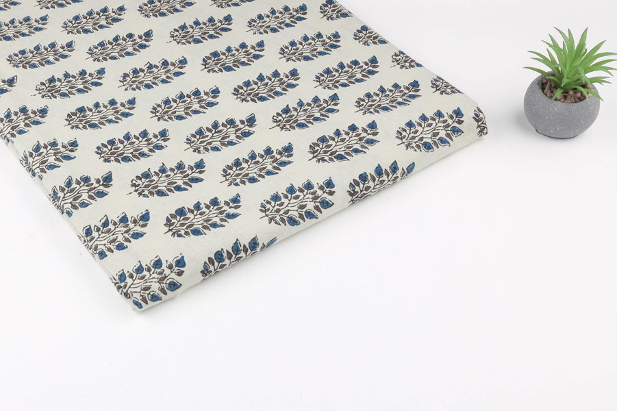 Natural White Handblock Ajrakh Printed Cotton Fabric