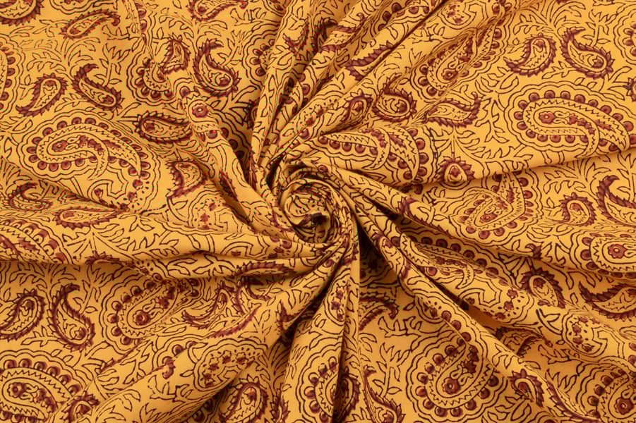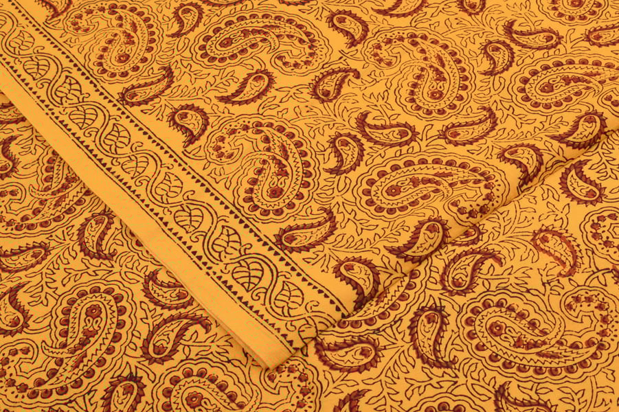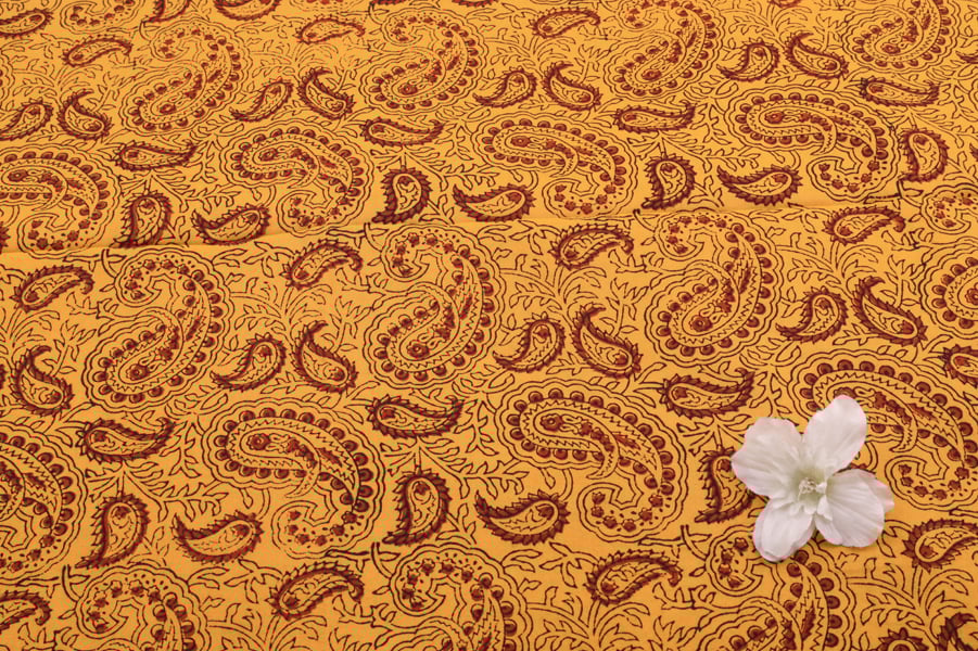 Amber Flame Yellow Handblock Bagh Printed Cotton Fabric