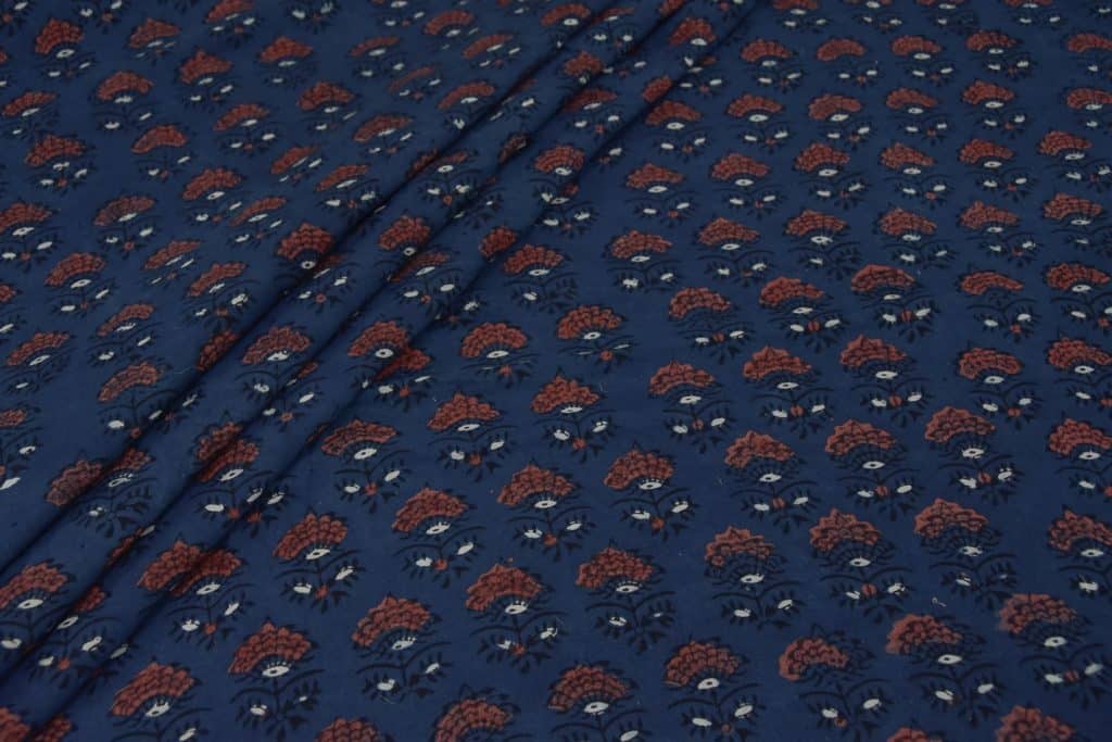 Midnight Blue Handblock Bagh Printed Cotton Fabric