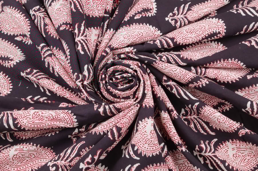 Black Handblock Bagh Printed Cotton Fabric