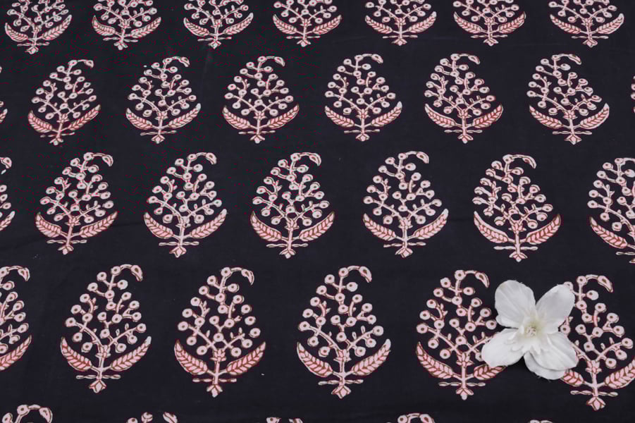 Black Handblock Bagh HandBlock Printed Cotton Fabric