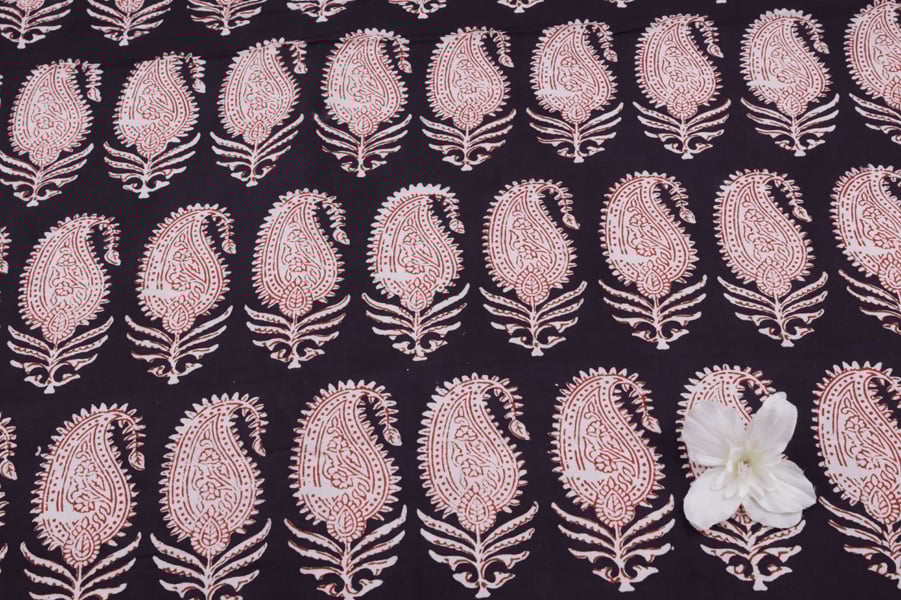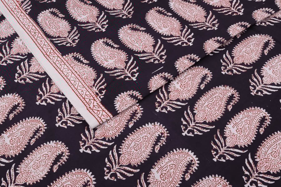 Black Handblock Bagh HandBlock Printed Cotton Fabric