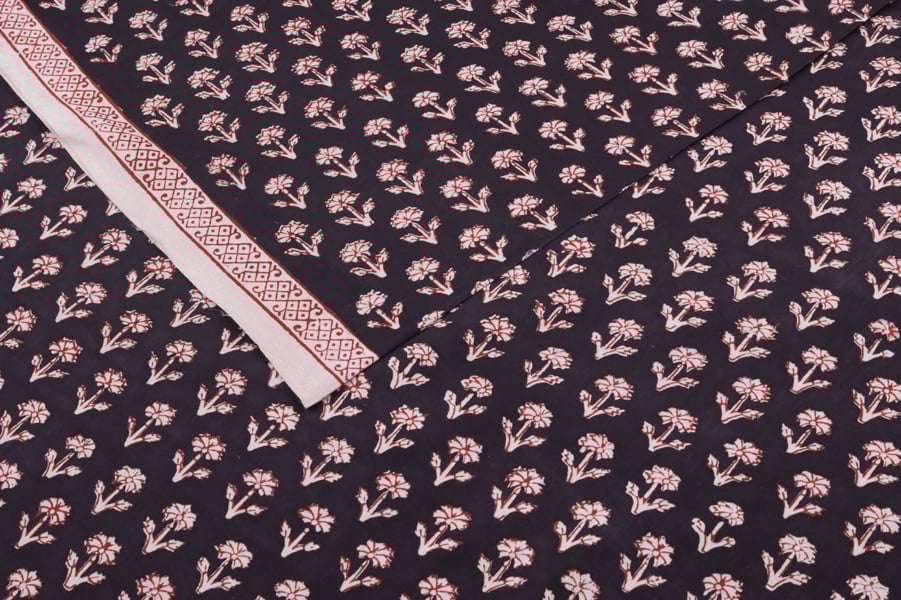 Black Handblock Bagh Printed Cotton Fabric