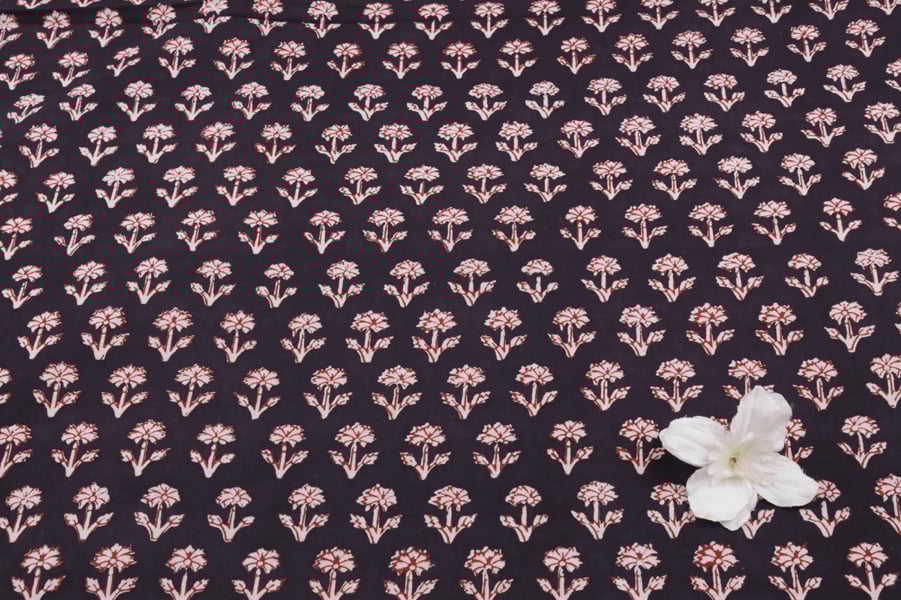 Black Handblock Bagh HandBlock Printed Cotton Fabric
