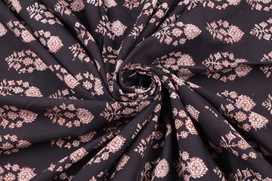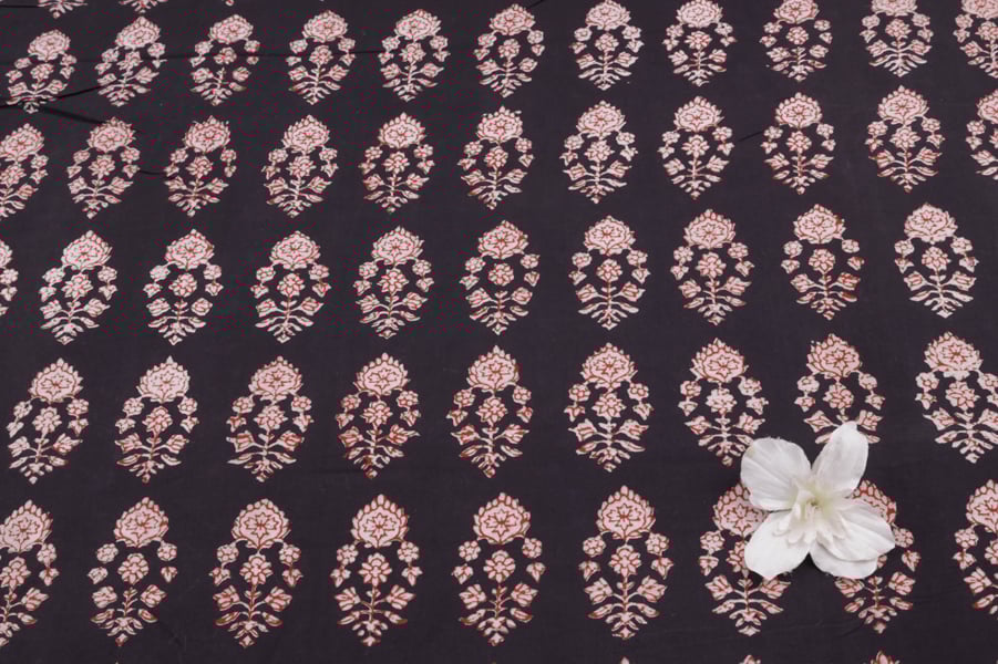 Black Handblock Bagh HandBlock Printed Cotton Fabric