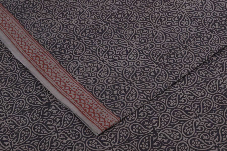 Black Handblock Bagh Printed Soft Cotton Fabric