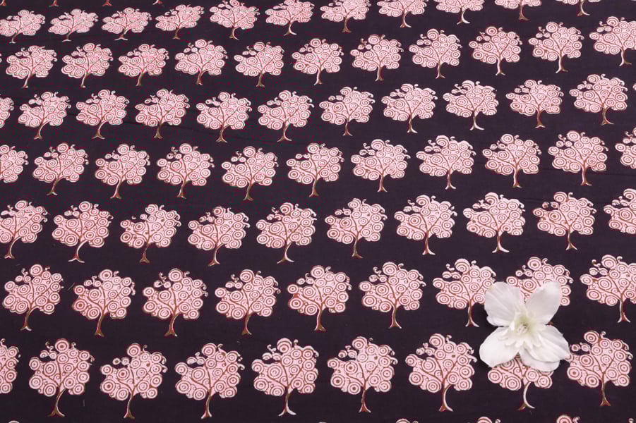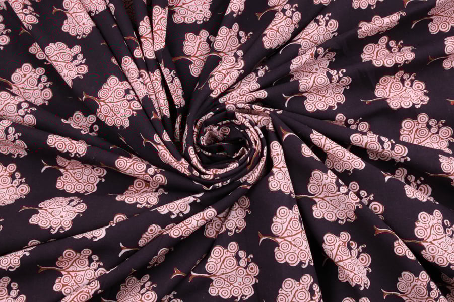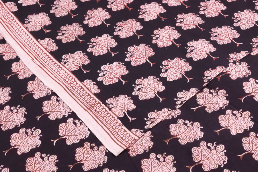 Black Handblock Bagh Printed Soft Cotton Fabric