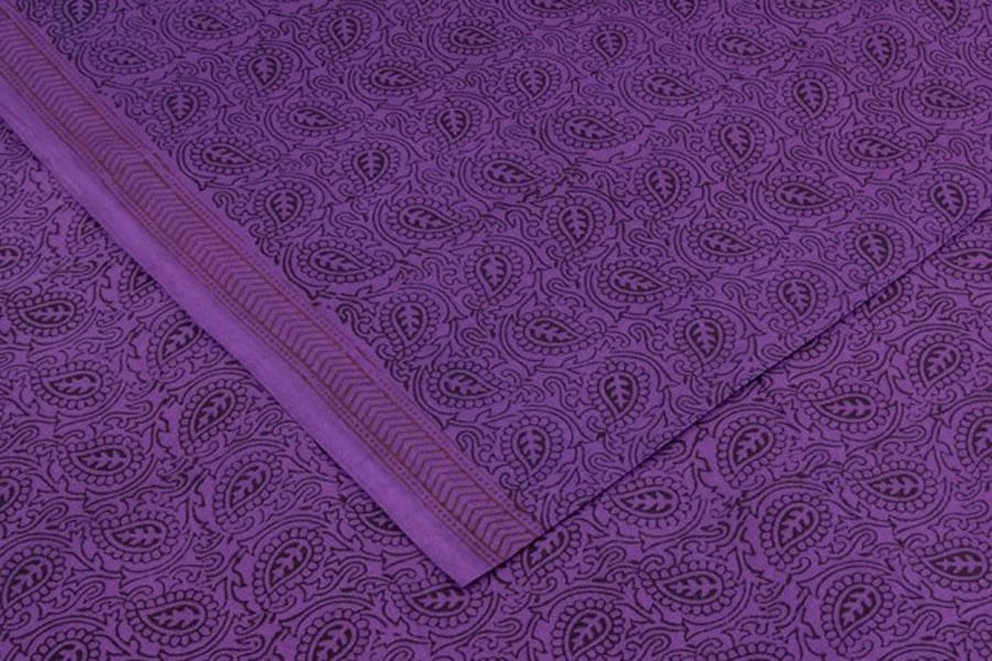 Bright Lavender Purple Handblock Bagh Printed Cotton Fabric