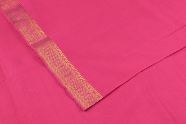 Dark Pink Handwoven Zari Border Pure Cotton Fabric