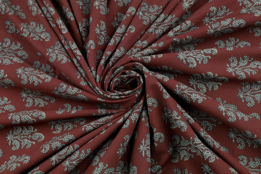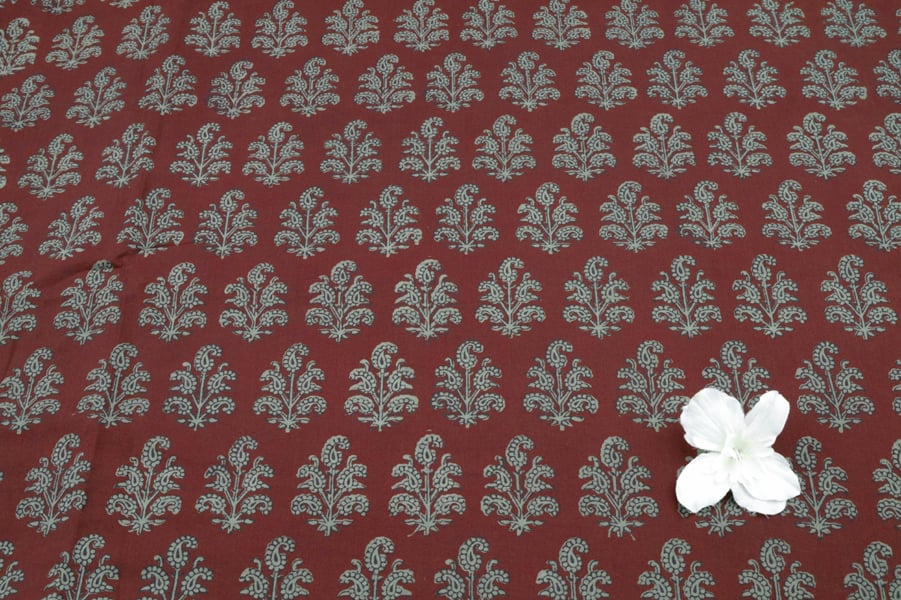 Dark Wine Red Handblock Bagh HandBlock Printed Cotton Fabric
