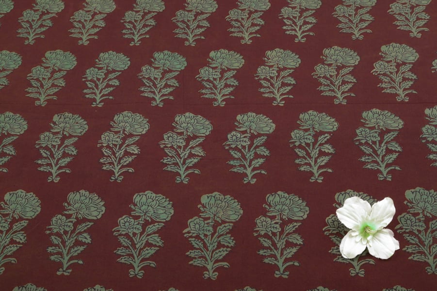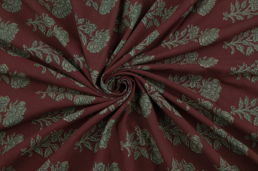 Dark Wine Red Handblock Bagh HandBlock Printed Cotton Fabric