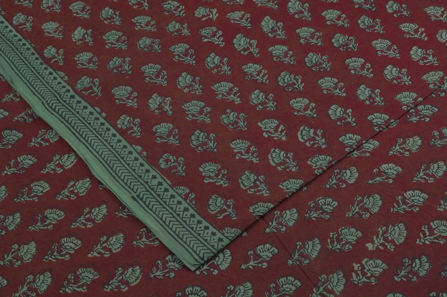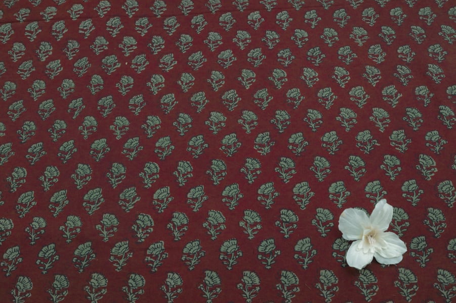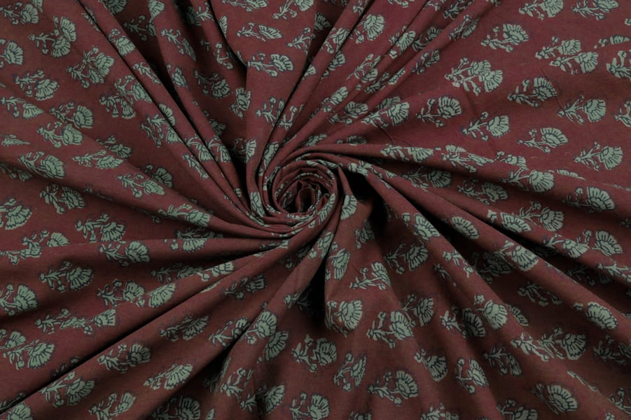 Dark Wine Red Handblock Bagh Printed Cotton Fabric