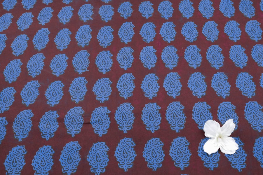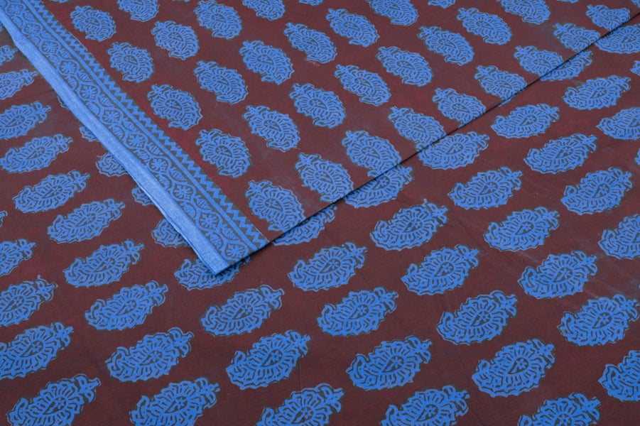 This Fabric is handloom woven and / or hand printed using vegetable dyes. There might be slight irregularities in the motif & colour shade which is a result of human involvement & is a hallmark of fabrics made by hand. Since the fabric is dyed using natural, vegetable dyes, it may rub dry or bleed colour on coming in contact with water for the first time.