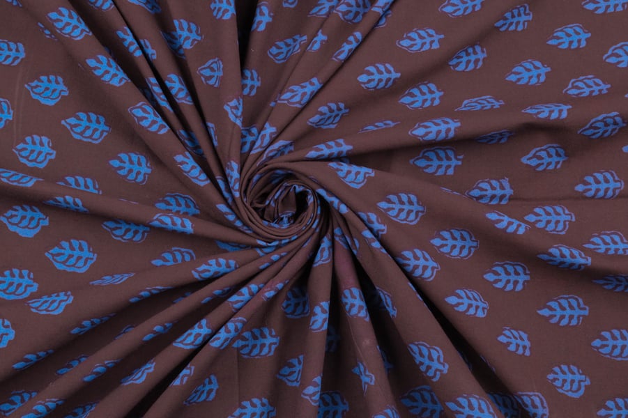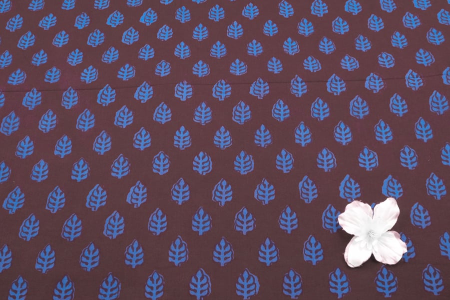 Espresso Brown Handblock Bagh Printed Cotton Fabric