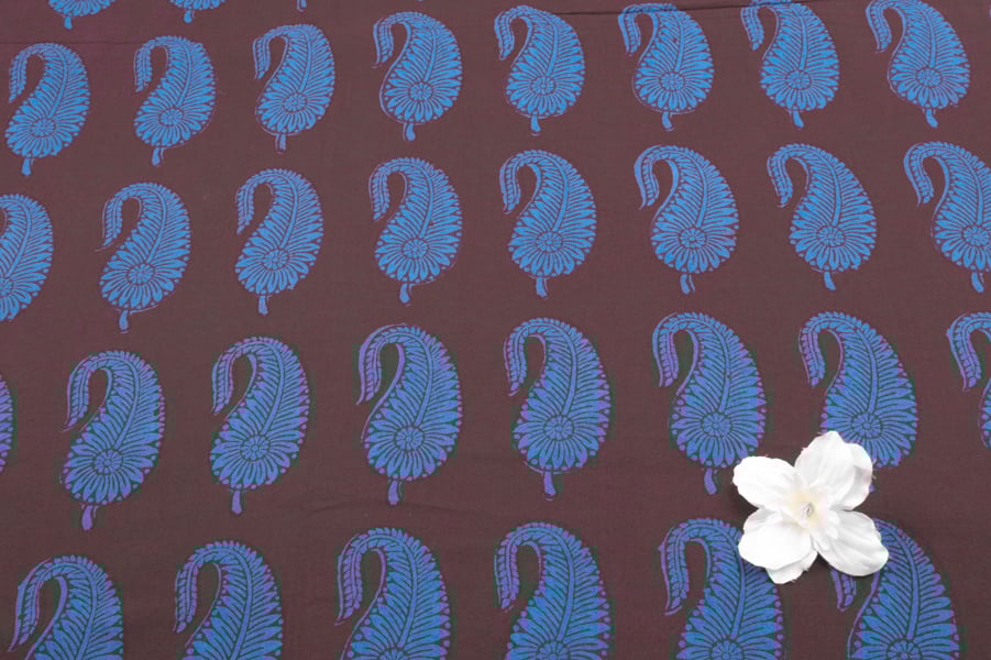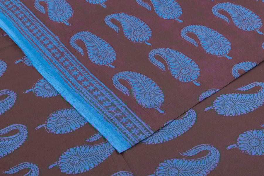 Espresso Brown Handblock Bagh Printed Cotton Fabric